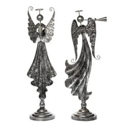 Transpac 21.5 In Silver Christmas Angel Decor Set Of 2 Elegant Metal Holiday Decorative Objects