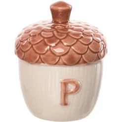 Transpac Dolomite 6.25 In. Harvest Patterned Acorn Mug With Lid
