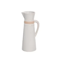 Transpac 13 Inch White Ceramic Everyday Common Ground Pitcher Dolomite Beverage Server
