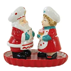 Transpac 4.0 Inch North Pole Salt And Pepper Shakers , Christmas Mr. Mrs. Claus (3PC)