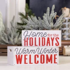 Transpac Wood 14.02 In. Multicolor Christmas Rustic Display Crate Set Of 2