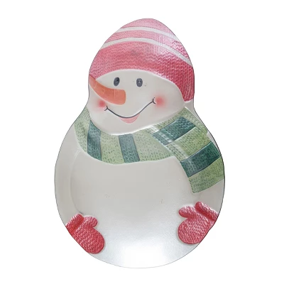 Perfect for serving holiday treats or as a festive centerpiece, this multicolor snowman platter adds a cheerful touch to your Christmas gatherings.