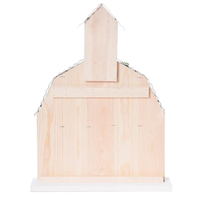 - Elevate your holiday decor with the 17.99″ OffWhite Christmas Layered Barn Table, crafted from durable wood for a charming and festive tabletop accent.