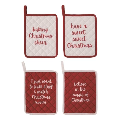 - Add a touch of festive cheer to your kitchen this Christmas with the Transpac Fabric Christmas Humor Pot Holder Set of 4, featuring colorful designs perfect for gift giving and holiday home decorations.