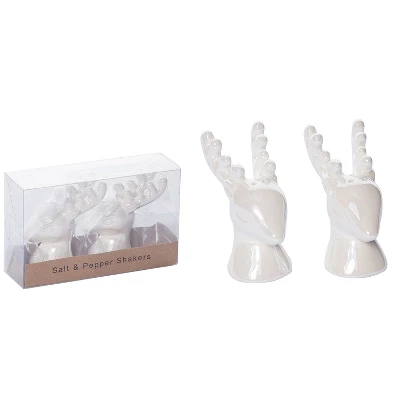 - Elevate your holiday dining experience with the Transpac Dolomite 6 in. White Christmas Elegant Reindeer Salt and Pepper Shaker Set, perfect for festive gift giving and seasonal table decor.