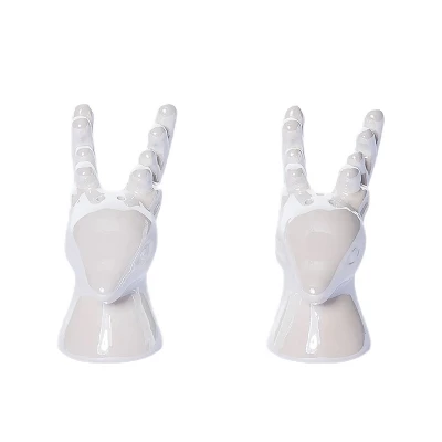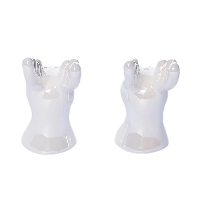 - Elegant 6inch white dolomite reindeer salt and pepper shaker set, perfect for Christmas tabletop decor, dishwasher safe and food safe for easy care.