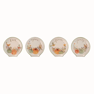 - Set of 4 beautifully designed ceramic spoon rests featuring a charming fall harvest bird theme, perfect for adding a seasonal touch to your kitchen.