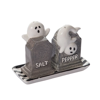 Add a spooky touch to your Halloween table setting with the Transpac Dolomite Haunted Tombstone Salt and Pepper Shaker Set. This charming set includes three pieces, featuring intricately designed tombstone-shaped shakers that are perfect for seasoning your favorite dishes. Made from high-quality ceramic, these shakers are not only functional but also serve as delightful decorations for your indoor space. The classic white finish adds a ghostly elegance, making them ideal for Halloween gatherings or as unique hostess gifts. Easy to care for, they are both dishware-safe and microwave-safe, ensuring convenience for everyday use. Elevate your dining experience and impress your guests with this whimsical and festive salt and pepper shaker set.