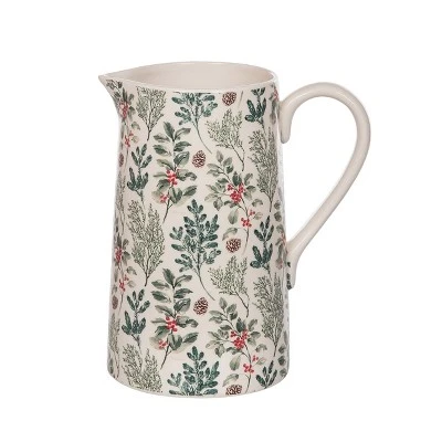 Introducing the Transpac Dolomite Holiday Branches Pitcher, a stunning addition to your festive tabletop decor. This beautifully crafted ceramic pitcher features a delightful multicolor design that captures the essence of Christmas with its intricate holiday branches motif. With a generous capacity of 120 ounces, it is perfect for serving beverages at your holiday gatherings or for displaying as a charming decorative piece. The pitcher is designed for indoor use, making it an ideal choice for your dining table or kitchen counter. Easy to maintain, simply spot or wipe clean to keep it looking its best. Whether you are hosting a holiday party or looking for the perfect gift for a loved one, this pitcher makes an excellent hostess gift or a thoughtful present for any occasion. Celebrate the season in style with this enchanting holiday pitcher.