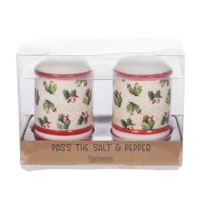 Add a touch of vintage charm to your holiday table with the Transpac Dolomite Vintage Holly Salt and Pepper Shaker Set. This delightful set of two shakers features a beautiful multicolor design that captures the spirit of Christmas, making them perfect decorative objects for your festive gatherings. Crafted from high-quality ceramic, these shakers are not only stylish but also practical, as they are both dishware-safe and microwave-safe. Ideal for indoor use, they serve as a wonderful addition to your tabletop decor or as a thoughtful gift for friends and family. Whether you are hosting a holiday dinner or looking for the perfect hostess gift, this salt and pepper shaker set is sure to impress and bring joy to your celebrations.