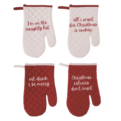 Perfect for holiday baking and cooking, this set of 4 festive oven mitts adds a cheerful touch to your kitchen while providing essential protection when handling hot dishes.