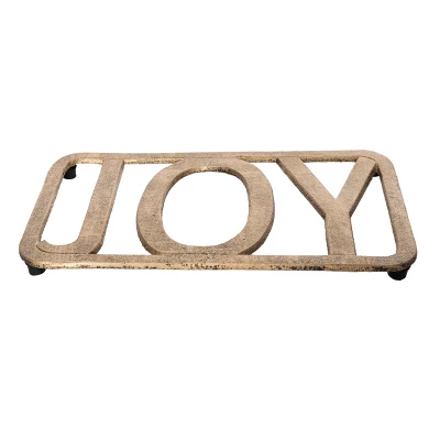 Introducing the Transpac Metal Gold Trivet Joy, a stunning addition to your holiday tabletop decor. This elegant trivet combines functionality with festive charm, making it the perfect accessory for your Christmas gatherings. Crafted from durable metal, it features a beautiful gold finish that adds a touch of sophistication to any setting. Whether you’re serving up a delicious holiday feast or simply displaying your favorite seasonal decor, this trivet is designed to protect your surfaces while enhancing your festive atmosphere. Ideal for indoor use, it also makes a thoughtful gift for hostesses or loved ones who appreciate stylish home accents. Easy to care for, simply spot or wipe clean to maintain its shine. Elevate your holiday entertaining with the Transpac Metal Gold Trivet Joy.