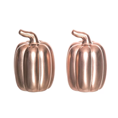 - Elevate your fall table setting with the Transpac Dolomite Gold Harvest Metallic Pumpkins Salt and Pepper Shakers, perfect for gift giving during the harvest season.