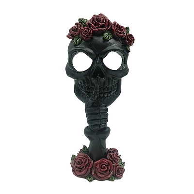 - Unique resin rose and skull bust design adds a striking touch to your Halloween decor.