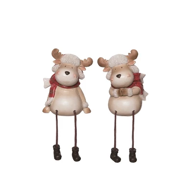 - Charming set of 2 resin smiling moose figurines perfect for adding a whimsical touch to your holiday decor.